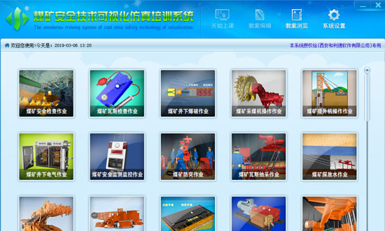 该系统结合煤矿安全生产特点、行业安全培训现状以及国家对安全技术培训的有关要求,成功的实现了煤矿安全技术可视化仿真教学,内容涵盖煤矿各技术工种,是一套适合煤矿进行技能培训的信息化教材。